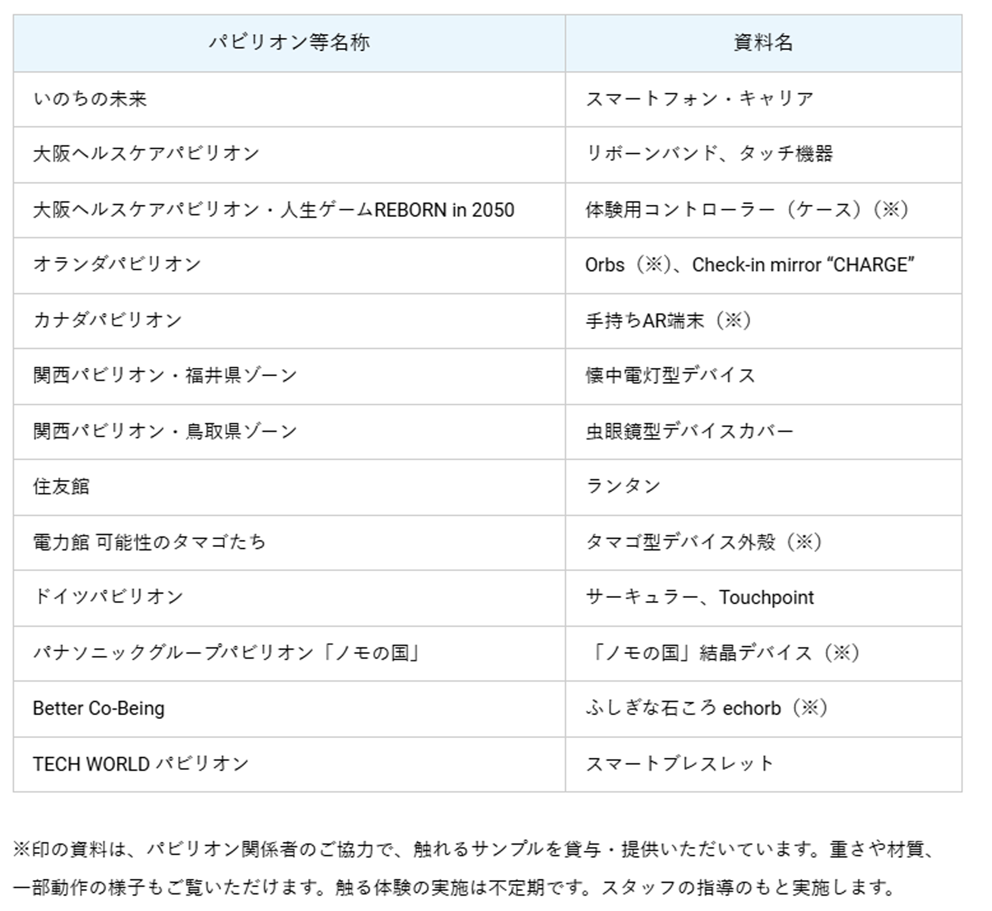 “手持ちデバイス”とは、パビリオンの展示体験用に配布され、携えながら観覧をする機器のことです。