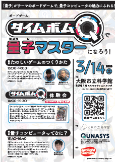 | 3月14日(土) | ボードゲーム『タイムボムQ』で量子マスターになろう! |